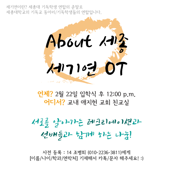 세기연신입생OT 2월22일(월) 정오12시 애지헌교회